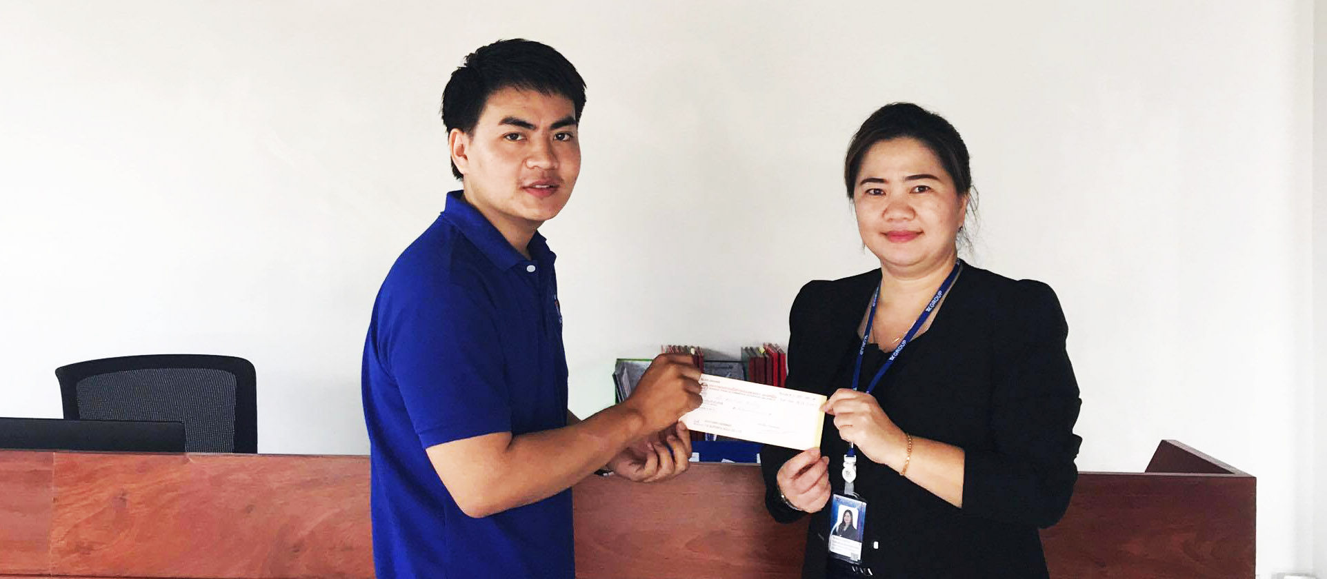 Niphaphone Bandavong Senior Admin and HR manager represented TK Group to Hand over a donation to the The 44thShip for Southeast Asian Youth Program with a total value of 5.000.000 kip